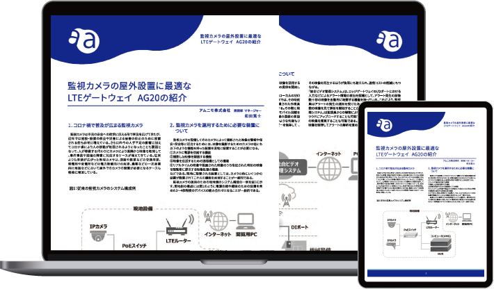 こちらのフォームより、ホワイトペーパー「監視カメラの屋外設置に最適なLTEゲートウェイ AG20の紹介」がダウンロードできます。